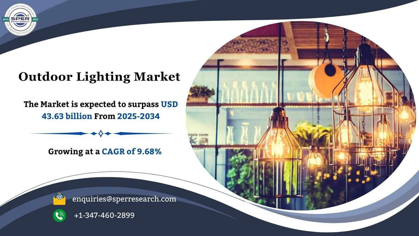 According to SPER market research, ‘Global Outdoor Lighting Market Size- By Type, By Application, By Distribution Channel - Regional Outlook, Competitive Strategies and Segment Forecast to 2034’ state that the Global Outdoor Lighting Market is predicted to reach 43.63 billion by 2034 with a CAGR of 9.68%.